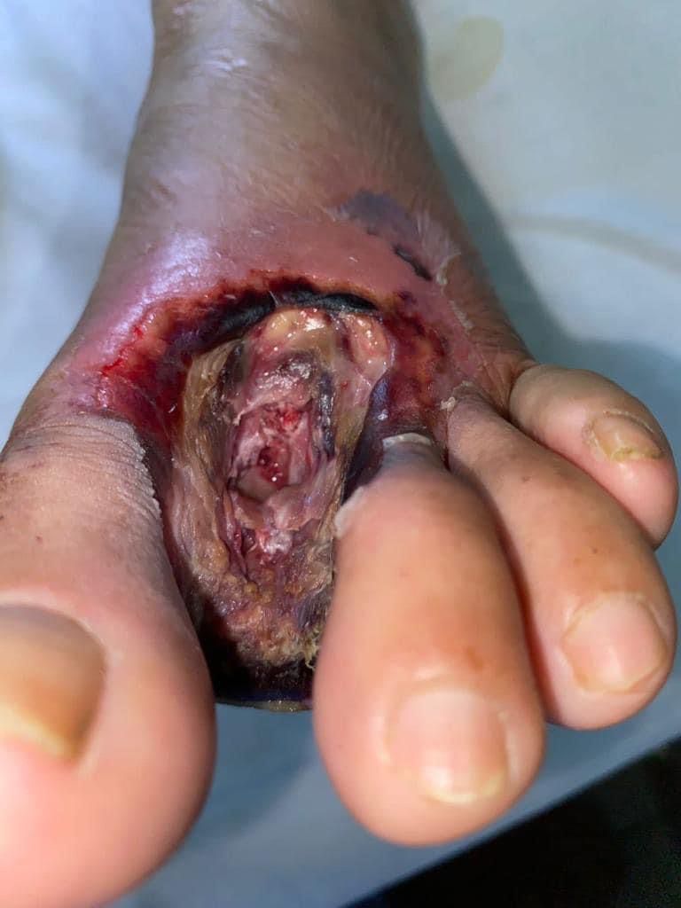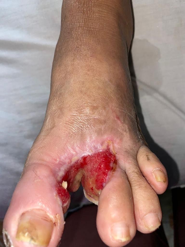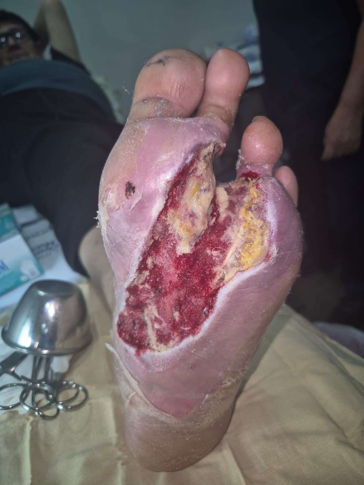 Aqui podemos ver el proceso de sanación de un paciente con pie diabético, en el cual podemos apreciar el proceso de sanación y recuperación del miembro.